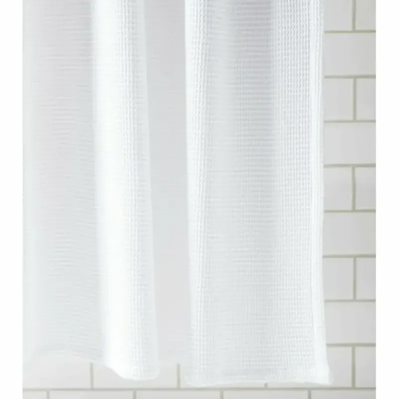 - This shower curtain instantly refreshes your look with a clean waffle weave texture that reminds us of our favorite spas.