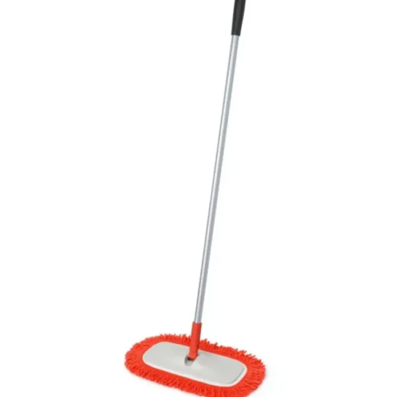 Clean every nook and cranny with the Microfiber Floor Duster with Fringe. The microfiber cloth grabs dust and dirt. while the long fringe reaches into corners. under furniture. and in other hard-to-reach places. The Duster pivots so it can reach far under low furniture. and the soft. comfortable handle ensures you always have a non-slip grip. When you’re done cleaning. you can pop the microfiber head in the washing machine and get it ready for its next job.