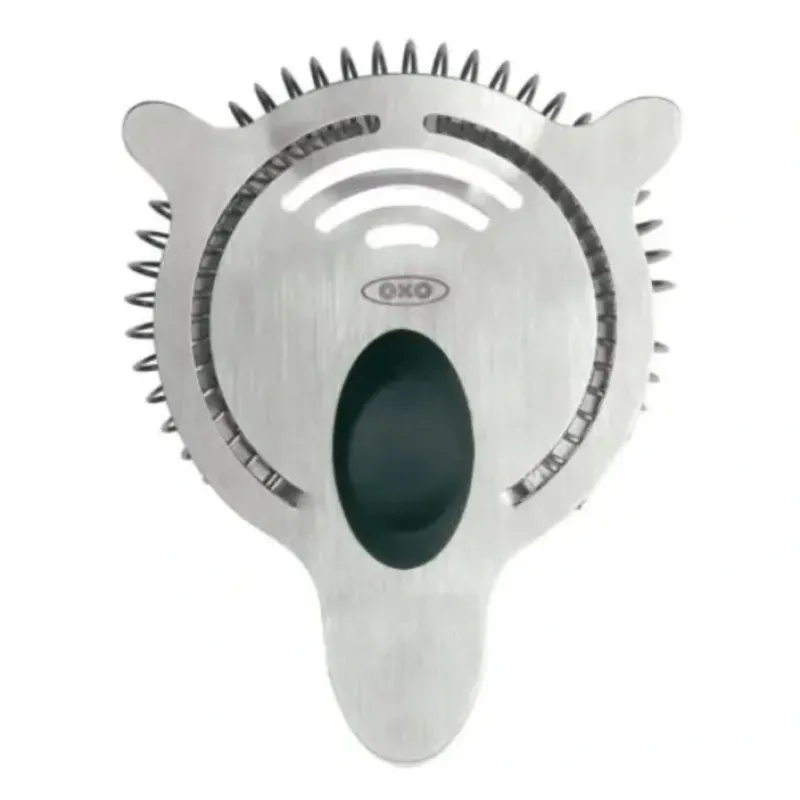 The Strainer’s raised lip forces liquids to strain through the springs. preventing drips and puddles. The soft finger rest offers comfort while straining. and the short handle allows for convenient storage.