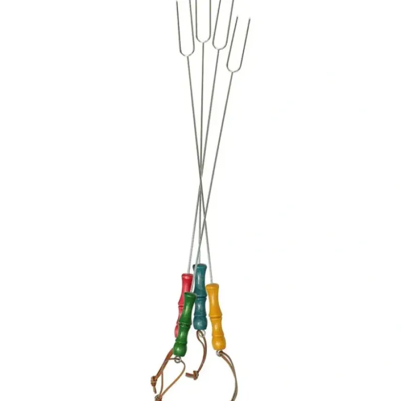 Rome’s Picnic Forks are the perfect marshmallow roaster for summertime get togethers with family and friends. Created in a retro 60’s cottage style. the forks have turned wood handles in 4 different primary colors. S’more making here we come! 22″ overall length. Chrome plated steel with wood handle and loop leather strap. Colors may vary