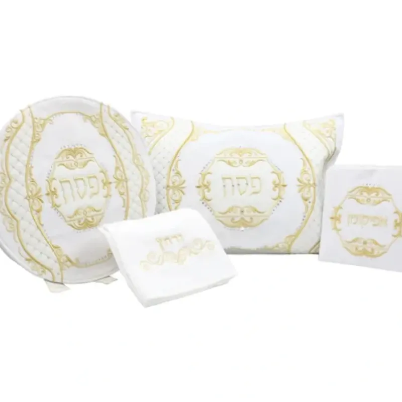 Pesach Set Velvet – Vinyl – 4 PC with Plastic CaseIncludes a Pillow Case 25″x18″. Matzah Cover 18″ D. Afikomen Bag 10″x10″ and Hand Towel 13″x30″