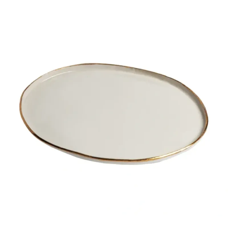 DescriptionO9578350WPP501 White Ceramic Oval Plate with Gold Border