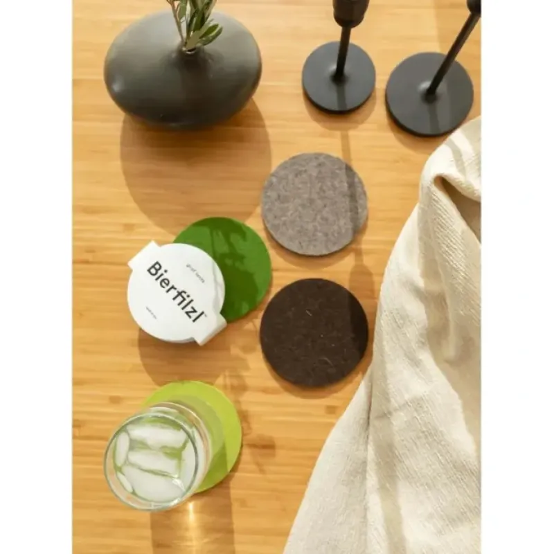 Wool is the most hydrophilic of all natural fibers. absorbing as much as 30% of its weight without feeling wet. Our traditional Bierfilzl (“Beer Felt”) are the highest quality German merino wool felt coasters on the market today. Their clean and minimal execution offers an unexpected textural and refined modern heritage element to any home decor. Set includes 4 hand-cut heavy duty 5mm thick mixed color Merino wool felt coasters to provide extra surface protection.