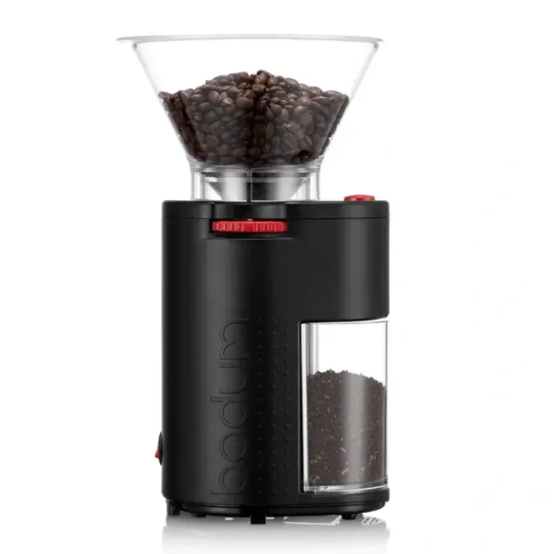 - The conical burr provides a consistent grind with no sharpening required. It spins slower than a wheel model. making it quieter and less messy