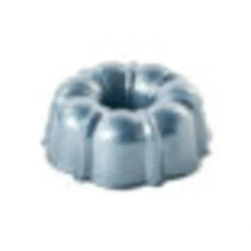 A flashy version of our very popular 12 cup formed Bundt pan. this 6 Cup Formed Bundt makes a perfect size for smaller portions or a sweet gift from your kitchen. Aluminum bakes best because it conducts heat more evenly than other materials for a perfect finish. The 6 cup Pan comes in twobeautiful exterior colors. Twilight Blue and Golden Hour. paired with a premium nonstick silver interior for easy release and cleaning.