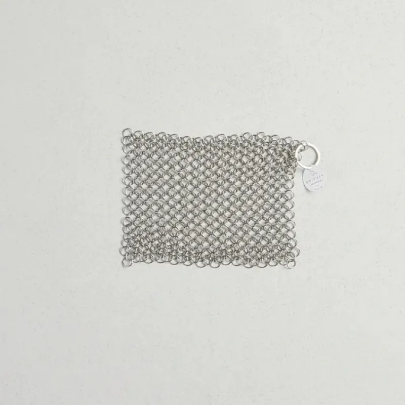 The cleaning tool you never knew you needed. our chainmail scrubber removes stubborn burned-on bits of food while maintaining your seasoning with a light swirl over your Smithey’s surface. Designed for use both on cast iron and carbon steel cookware.