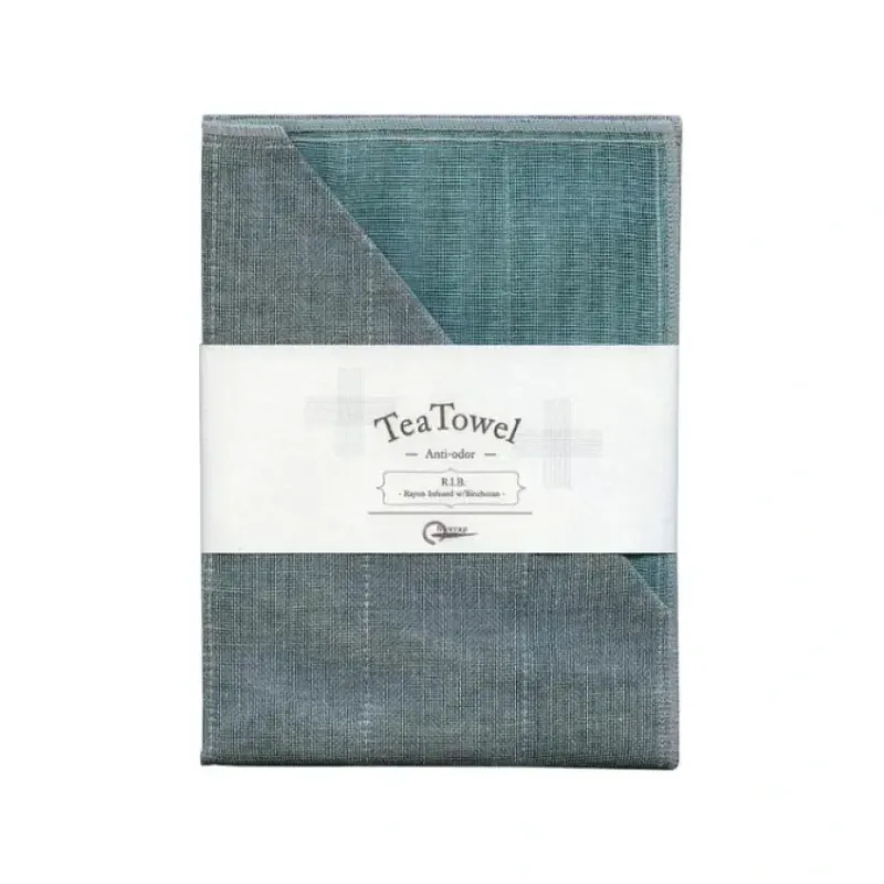 The R.I.B. Tea Towel is infused with binchotan charcoal. Binchotan is the highest grade of charcoal. and is prized for its natural purification properties. The infused binchotan absorbs odors. One side of the cloth features a dyed color. and the other side is natural binchotan gray. Available in assortedcolors.