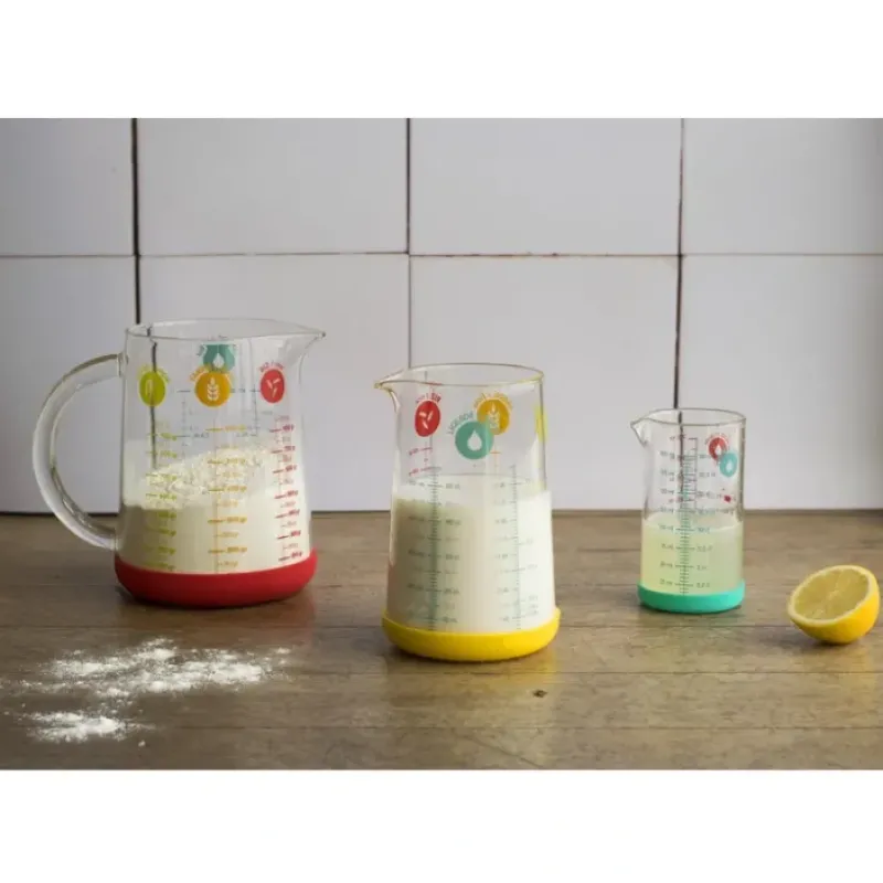 The Pebbly precision measuring glass has a protective non-slip silicone base. which is removable for cleaning or if you need to read small graduations. Composed of borosilicate glass. it is resistant and light at the same time. Highly practical. it is suitable to use in the microwave. refrigerator and even the freezer! No more calculating conversions either! It has 4 liquid graduations: cl/ml. cup and Fl. oz.