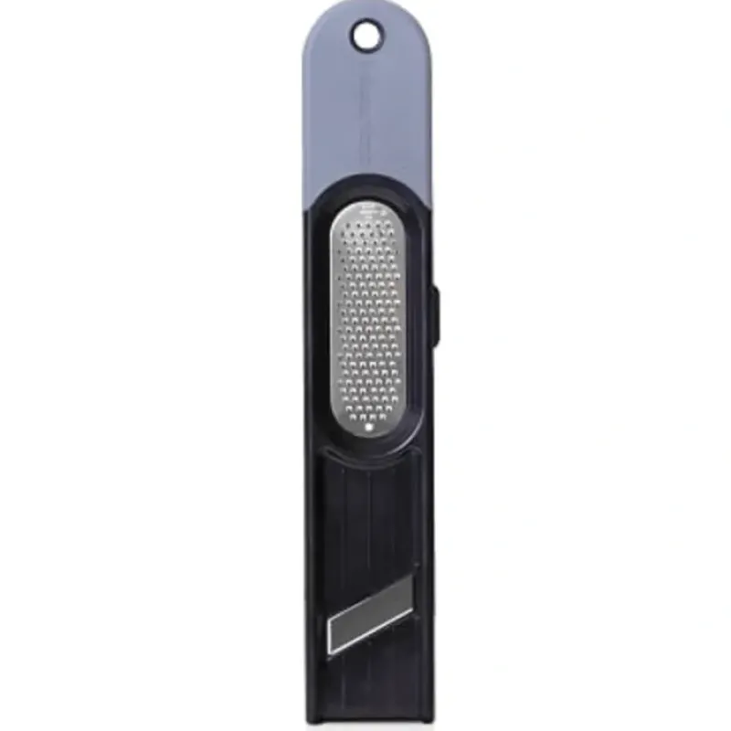 Crafted using original Microplane stainless steel etched blades. the seriously sharp and efficient 3-in-1 Ginger Tool is the only gadget needed when cooking or baking with ginger. The rasp-like tool features a peeler on the side to quickly remove the peel of knobby. fresh ginger root. A wide panel incorporating Microplane’s top-selling Fine blade. makes fast work of grating ginger. and a razor-sharp. angled blade towards the bottom of the tool thinly slices ginger with ease and precision.