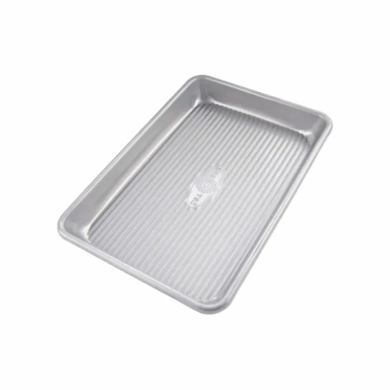 - Made to the same quality standards as our regular sized sheets. this aluminized steel bakeware is strong. durable. and warp resistant