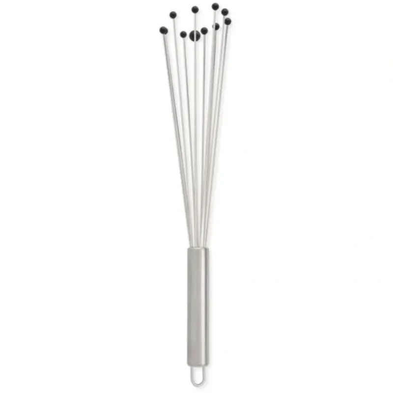 - Mrs. Anderson’s Ball Whisk with weighted silicone ball tips fans out to cover more area and mix in corners and tight spaces for fast thorough whisking