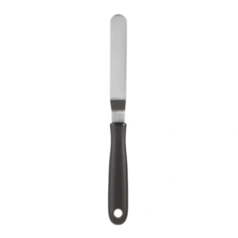 The sturdy yet flexible stainless steel blade takes the fear of broken cupcakes out of icing. The smooth edges allow for even coats and the soft handle is contoured for a comfortable grip. The Icing Knife is angled to keep the frosting-covered blade off your countertops.