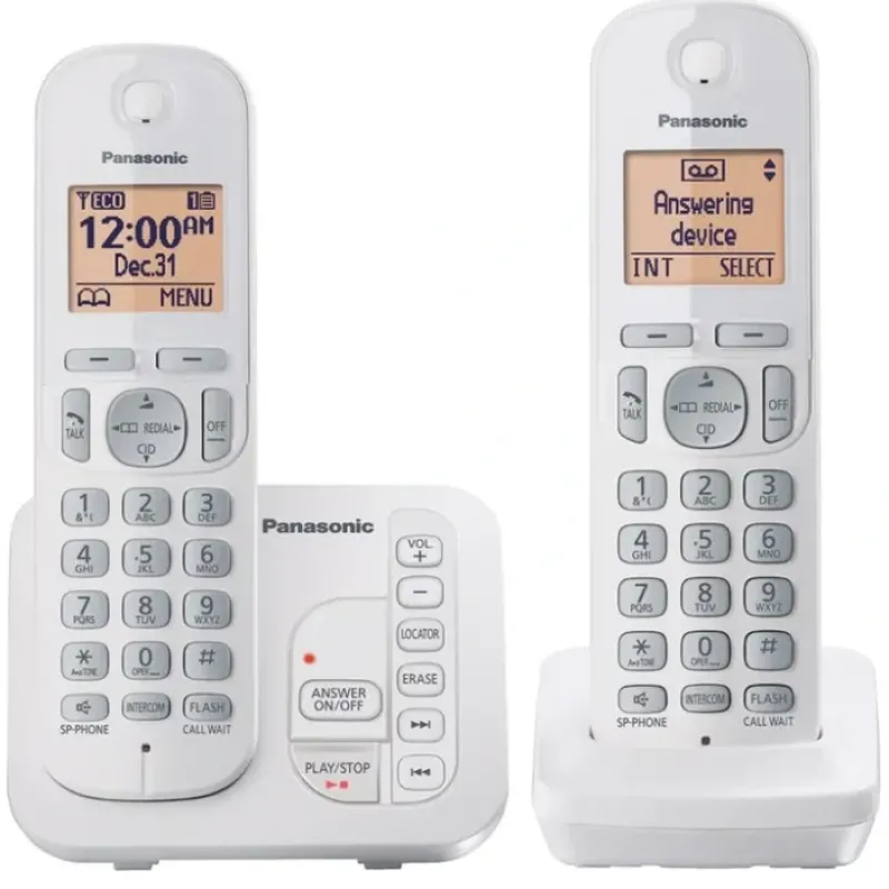Featuring DECT 6.0 technology for a clear. crisp audio. the KX-TG7122SK Two-Handset Cordless Phone has an answering machine with 17 minutes of voicemail storage. Easily block up to 30 telemarketers. robocallers and other unwanted numbers using the one-touch dedicated call block button. Hands-free speaker on the handset and intercom; large 1.6″ amber backlit display. Expandable up to six handsets.Key Features:Call Block up to 30 NumbersCompact Base Unit Stylish DesignLarge. 1.6-inch LCD easy-to-read Display Intelligent Eco ModeHands-free speaker on the handset and intercomDedicated Intercom ButtonTwo handset cordless home phone systemDigital answering system. stores up to 17 minutes of messagesCaller ID Memory. Up to 50