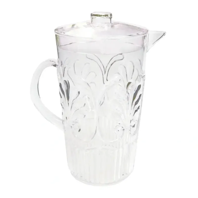 Polycarbonate glassware is virtually unbreakable. shatter resistant and dishwasher safe. top and bottom rack. As with all Polycarbonate not recommended for microwave. Product includes 1 pitcher with lid with dimensions 3.5” wide by 9.75” tall.