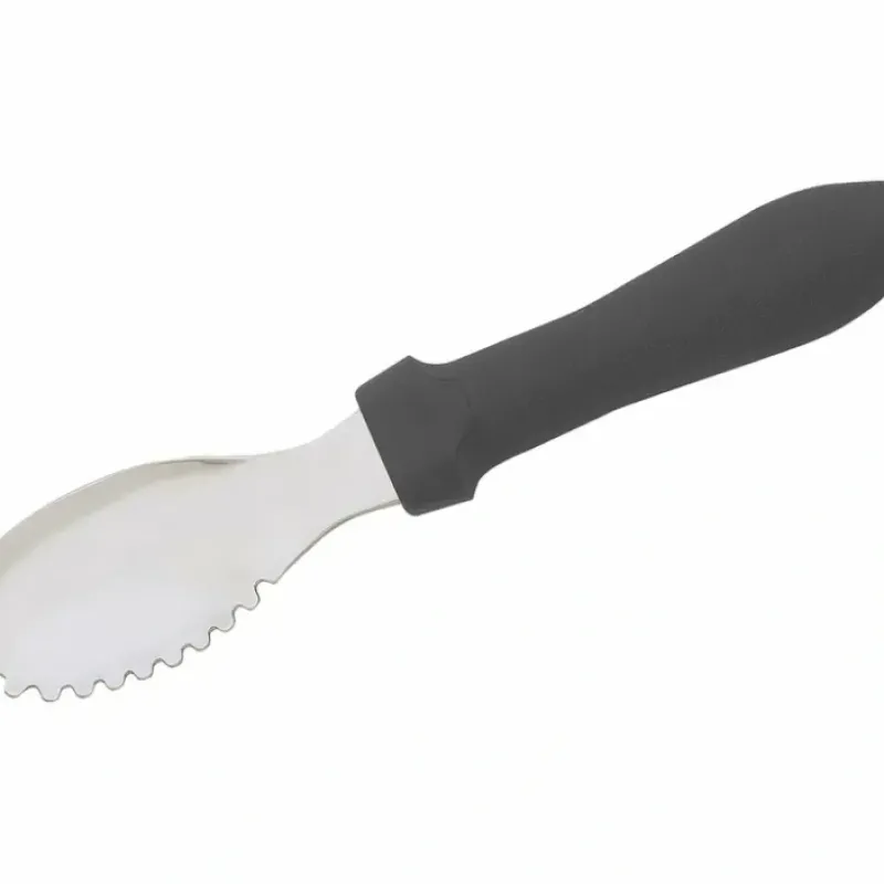 The Messermeister heavy duty Culinary Scoop. with a scalloped tooth side. is the perfect tool for removing seed and fibrous material from pumpkins and squash. It is also excellent at removing fruit from avocados. scooping hard ice cream. and scraping flesh from fruits and vegetables.