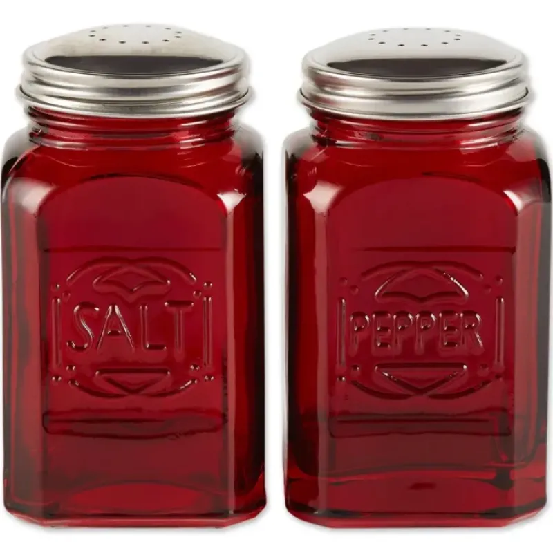 - Add charm to your table or countertop with our colored glass designs and polished stainless steel shaker caps.