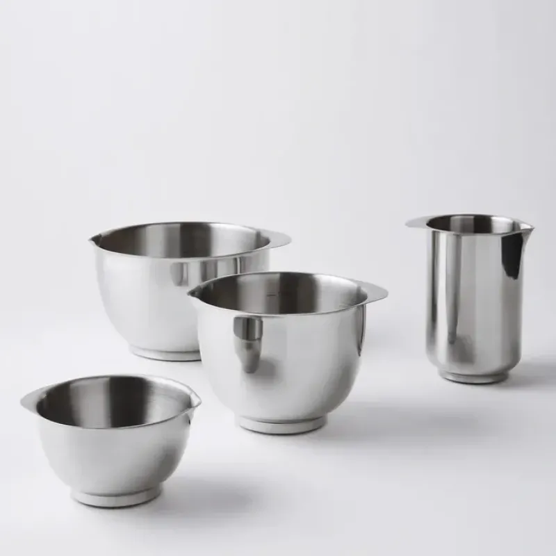 Recognize this iconic Danish design? Lots of you fell in love with the original mixing bowls that were named for Queen Margrethe of Denmark herself. all thanks to the simple handle on the rim. easy-pour spout. and anti-slip base. Now they’re shining in sleek stainless steel—which oh-so conveniently happens to be extra-durable and heat-resistant. too. Now. that’s something to celebrate!
