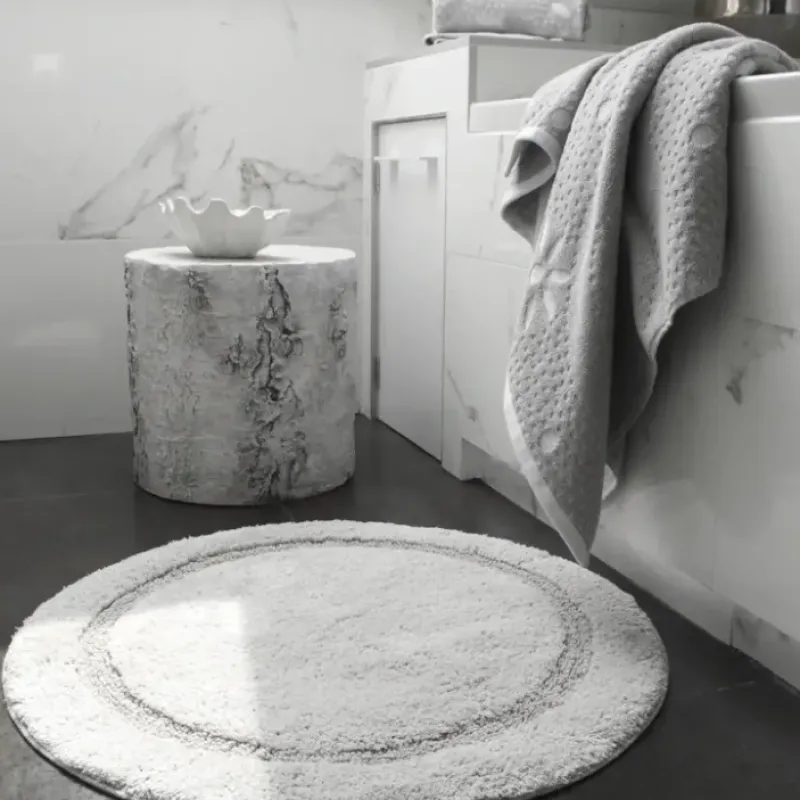Made from 100% cotton. this round bath mat is exceptionally soft and absorbent. with its plush. dense pile offering a cloud-like experience underfoot.