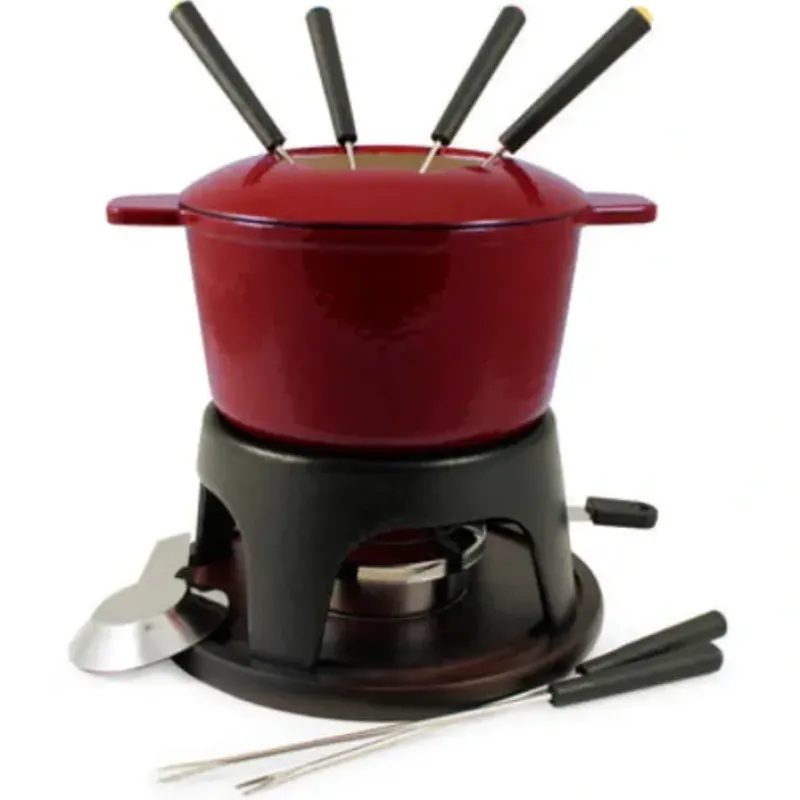 Swissmar Cast Iron Fondues offer the utmost in versatility. In addition to their décor savvy color pallet. they are ideal for meat. cheese AND chocolate fondue. Cast iron pots provide even heat distribution. making them ideal for cooking at both high and low temperatures – without hot spots.