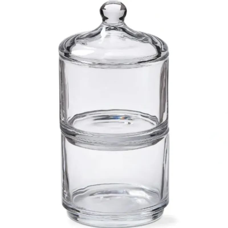 decorative and functional clear glass storage! a beautiful piece. store everything from small decor to everyday trinkets. easily display tiers stacked together or separated. a useful transitional piece that works great for both holiday and everyday.