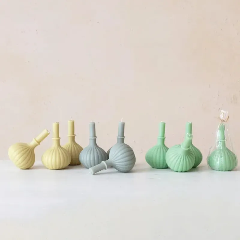 4″ Round x 6-1/4″H Unscented Taper in Pleated Vase Shaped Candle. Grey (Approximate Burn Time 20 Hours)