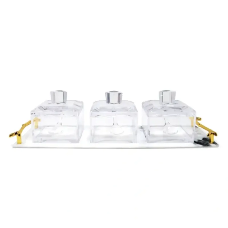DescriptionYA622504VSD4615 3 Bowl Acrylic Serving Dish on Marble Tray with Covers, 15″L x 4.75″W x 3.75R…