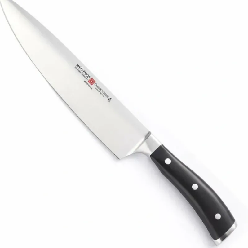 The Wüsthof Classic Ikon collection features a unique forged double-bolster design and ergonomic handles. Precision-forged. high-carbon stainless-steel blades resist rust and stains. and are finished by hand for the ultimate edge. Made in Germany.
