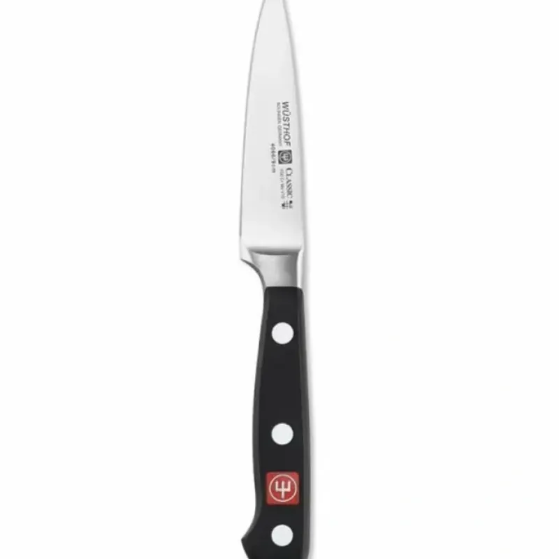 You’ll use this knife every day for the precise work of trimming. peeling and slicing fresh produce. Now featuring a more acute edge angle. the high-carbon steel blade cuts with razor sharpness. is easy to maintain and holds its edge for longer.