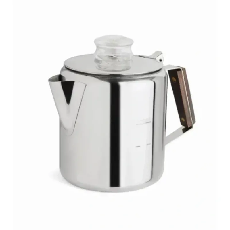 Perfect percolators! The Rapid Brew Stovetop Percolator makes 2-6 cups of fresh-perked coffee fast. easy and full of flavor. The perking process allows exact brew strength control. so it’s a treat for coffee lovers everywhere. The percolator body. cover and spreader plates are constructed of sparkling. high-luster heavy gauge 18/8 stainless steel. It features a clear glass cover knob for easy observing of brew strength and a laminated Permawood handle with natural woodgrain beauty and brass-rivet quality. Also includes an aluminum pump and basket. and for exact measurements. the percolator features permanent cup markings. This coffee maker is non-electric. so it’s perfect for camping. Great looking and great tasting! The best way to start your morning.