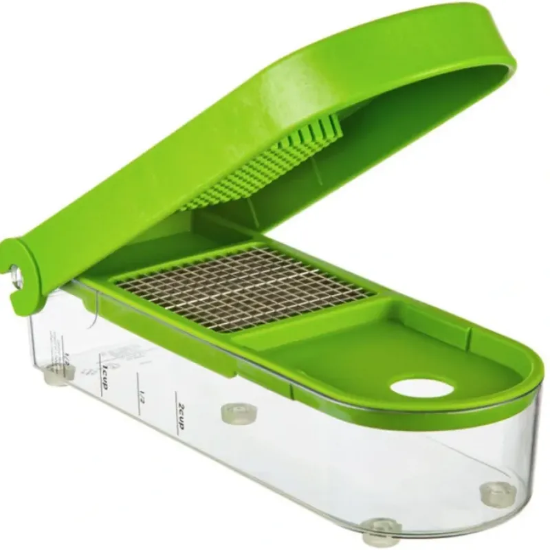 Simplify meal prep with the Prep Solutions Onion Chopper. Create perfectly diced onions (without the tears). tomatoes. peppers. and more in seconds. The non-skid base has a 2-cup capacity with measurement markings and a cleaning comb for the grid is included.