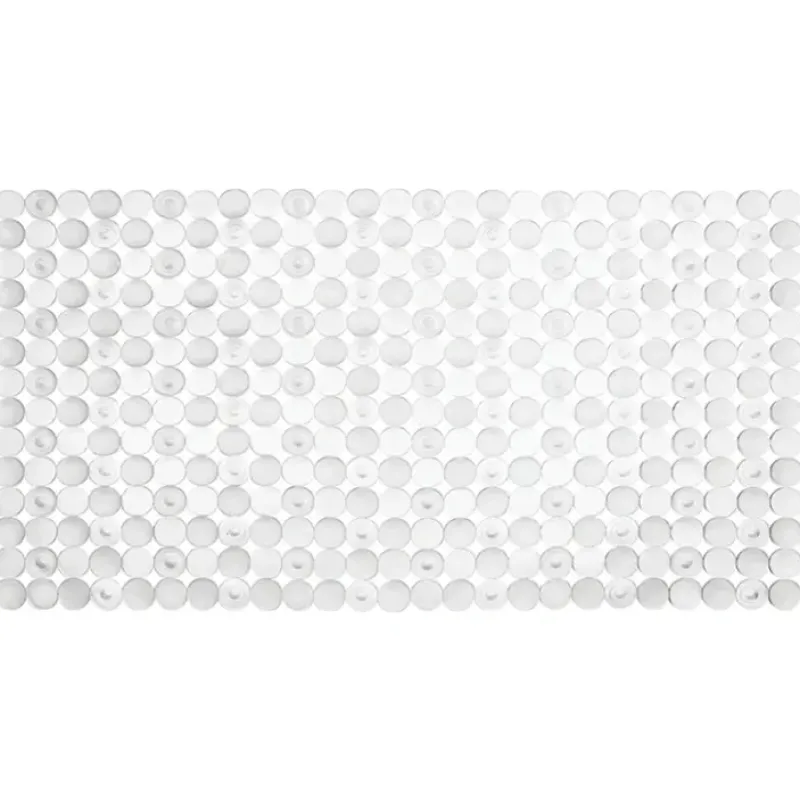 Unique circle design Suction cups on the bottom keep this mat securely in place Soft. pliable jelly-like plastic construction Clear 27 by 14-inchBe safe with style. The Orbz Bath Mat will help you get firm footing while in the shower or bath. The modern circle design sets this bath mat apart from the rest. Suction cups on the bottom keep the non-slip mat in place. With a smooth polished look. you can shower with the security of not slipping. This bath mat brings a distinctive modern look to the bath tub in a soft. jelly-like design.