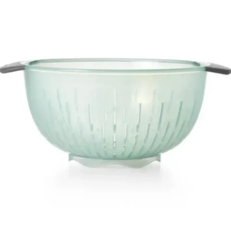 Whether you’re rising veggies or straining pasta. The 5 qtr. colander is ready for the job. The elevated. wave-shaped foot is perfect for draining directly into sinks. and the large handles with soft. comfortable grips make the colander easy to hold. The sturdy construction can handle heavy food and the smooth material is easy to clean.