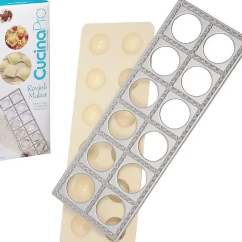 Make authentic homemade Italian ravioli at home with CucinaPro’s ravioli maker that includes both the tray and press! Pasta making just got easier now that the mold does all the cutting and shaping for you!