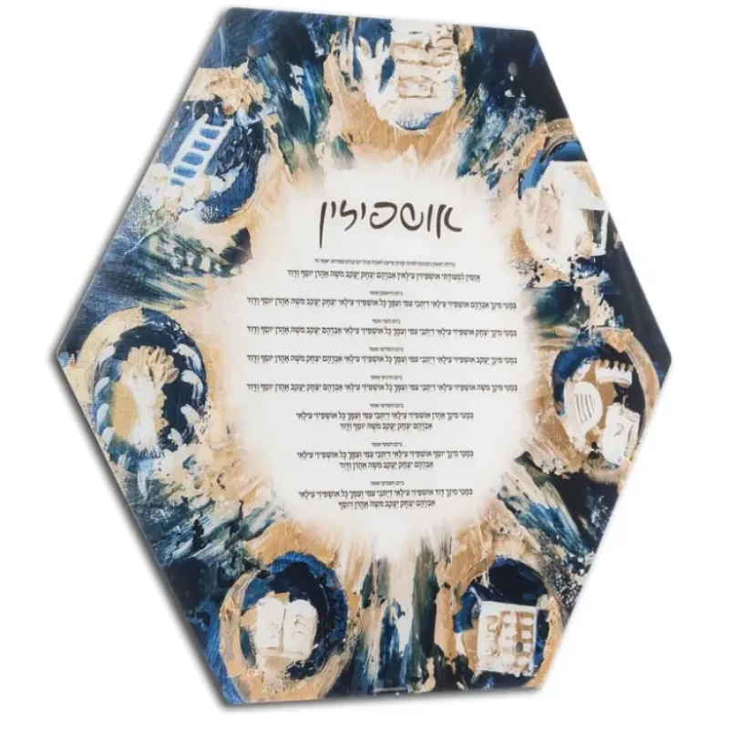 Clearance SD-H-US Sukkah Decoration – Hexagon Painted Ushpizen Navy & Gold – 16 – cozylivehome.com | we sell a wide range of comfortable household items Shop All