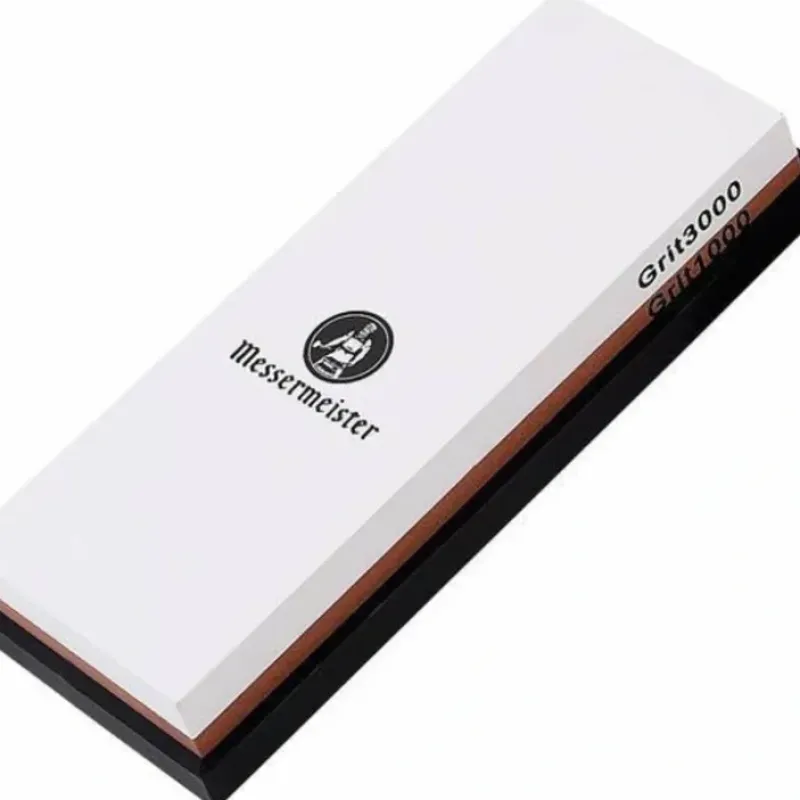Give your cutlery razor-sharp edges with this two-sided sharpening stone. The 1000-grit side is excellent for maintaining a very sharp edge. while the 3000-grit side is great for finishing with a polish. It comes with a silicone base for protection and storage.