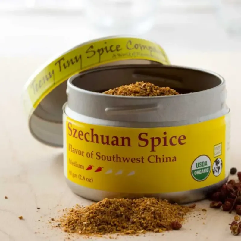 Szechuan Spice combines the tingle of Szechuan pepper with chili heat and the aromatics of ginger. cinnamon. star anise and cardamom to create an exotic and fiery blend. By itself. or combined with wine. vinegar. soy sauce. citrus juice. fish sauce. or even a spot of honey. Szechuan Spice will add dimension to your meats. veggies. stir fries and soups.