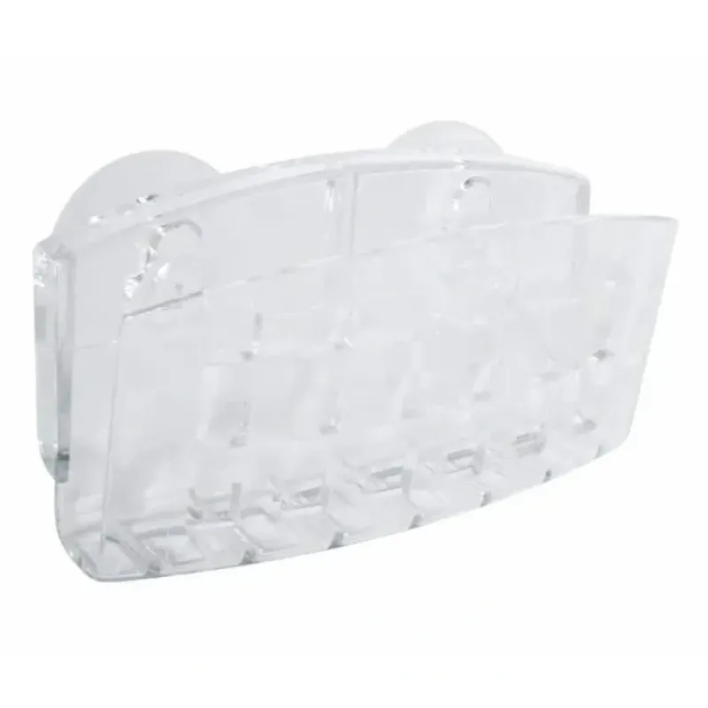 This clear Wall-Suctioning Sponge Caddy makes it easy to keep sponges off of your tub floor. It suctions to your shower wall for easy installation or removal. Put this in your shower or by the tub for convenience in cleaning.