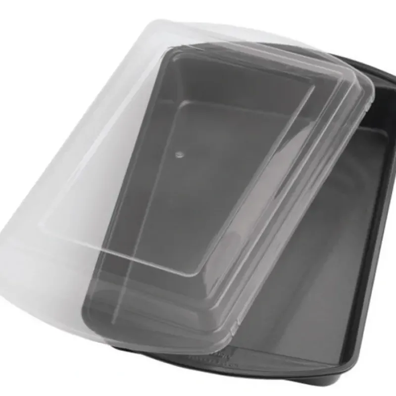 The perfect pan for taking dishes on the go! Bake bars. cakes. casseroles and more. and use the snap-tight cover to keep food fresh and prevent spills. The durable steel pan heats evenly and quickly and resists warping. plus it features a premium non-stick coating for easy release and quick cleanup.FeaturesBake up beautiful bars. cakes and casseroles with this even-heating. non-stick oblong baking panSnug-fitting plastic lid helps keep contents fresh and prevents spills on the go13 x 9 in.Limited ten-year warranty; see seller for detailsDishwasher safe