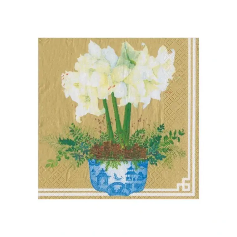 COCKTAIL NAPKINS POTTED AMARYLLIS GOLD – cozylivehome.com | we sell a wide range of comfortable household items^ Shop All