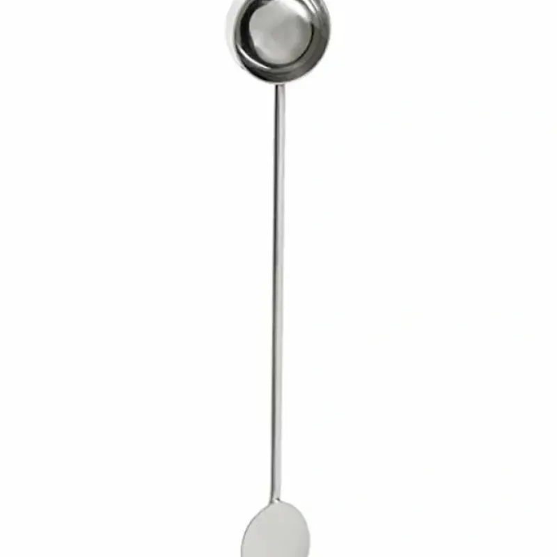 At coffee houses you might have seen the very long handled spoons used to prepare lattes. mochas. and all tall drinks. Imagine using this kind of tool in your own home to prepare your favorite coffee drinks. Frieling gives you this convenience and usefulness with their Coffee Scoop and French Press Spoon. It performs two chores. One side is a measured scoop for filling pots with ground coffees or grinders with beans. The other side is a spoon for stirring your prepared beverages after you have added milk. sugar. or syrups. The espresso scoop and coffee spoon has a total length of 11 inches. so you can reach to the very bottom of tall drink mugs. travel cups. even the deepest of French presses. The mirror-polished stainless steel espresso scoop and coffee spoon is durable. naturally BPA-free. and will not effect the taste of your beverages. Bring more of the professional barista experience home by using this Frieling Coffee Scoop and French Press Spoon.
