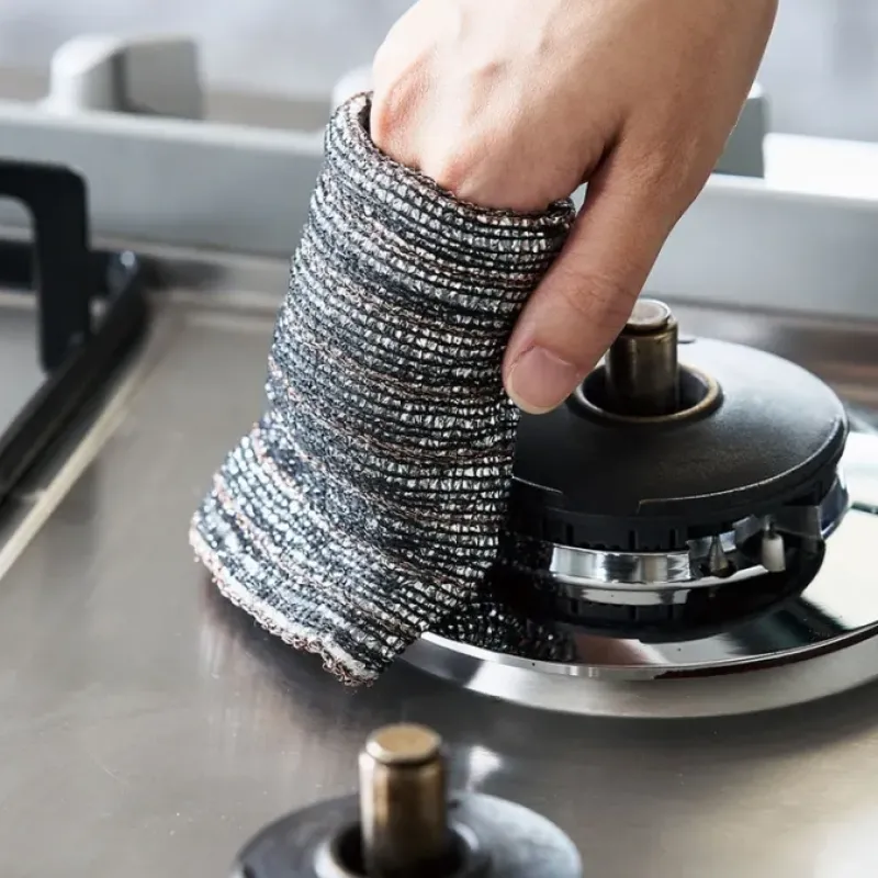 Soft gold scrubber that removes slime with copper thread and antibacterial threadCreper is a soft gold scrubbing brush that is highly effective at removing dirt and is woven with copper thread and antibacterial thread.It can be used on stainless steel. ceramics. IH glass tops. etc.. and is ideal for cleaning slime and water scale on sinks. oil stains on cooking utensils. etc.Compared to regular metal scrubbers. it is less likely to damage equipment and thoroughly scrapes away dirt.