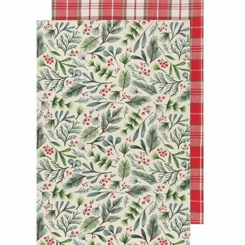 This Set of 2 Bough Berry Dishtowels includes both a festive evergreen and holly berry pattern and a handsome red. cream and green plaid pattern- perfect for the holidays. These printed and woven cotton dishtowels will make clean up a breeze while adding a crisp note of color to your home. Made of 100% cotton. Measuring 28″ l x 18″ w.