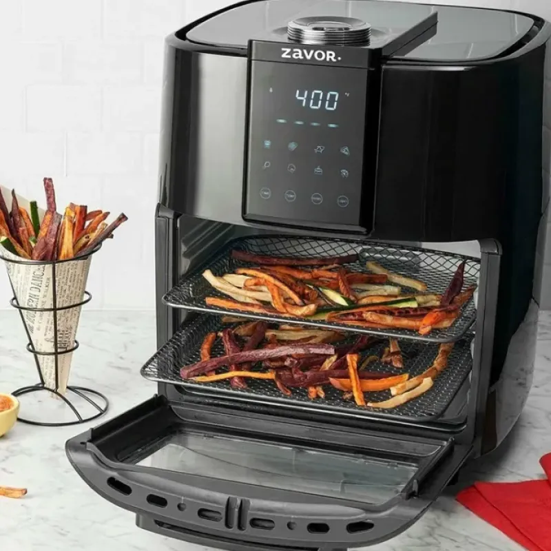 Zavor’s Crunch Air Fryer Oven provides the convenience of 7 kitchen electrics in one unit. It replaces a traditional air fryer. grill. rotisserie. dehydrator. toaster oven. roaster. and a convection oven to bring you one multifunctional powerhouse. Its 12.7 Qt. capacity provides more room for more food and better results. You can make traditionally fried foods with a fraction of the fat and calories.