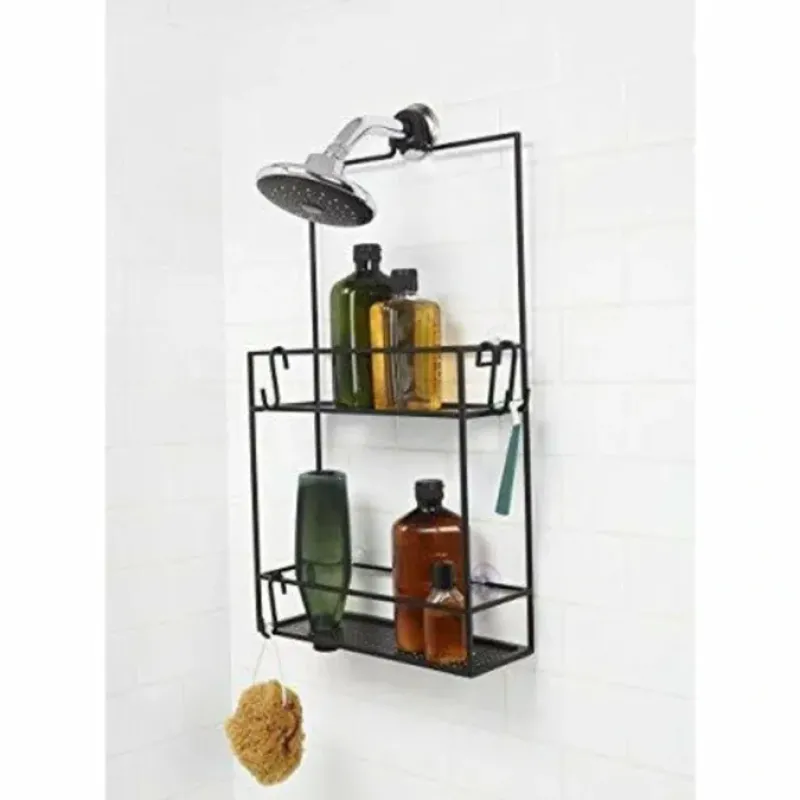 No one wants their shower caddy slipping down. moving around. or running out of storage space. With this smart and stylish shower caddy from Umbra. we’have got you covered. This durable caddy will stay put and help you stay organized. Introducing Cubiko Shower Caddy by Umbra. Cubiko borrows its chic style from the art world. its form inspired by the work of painter Piet Mondrian. and its organizational efficiency from grid-like structures. Cubiko is composed of two large shelves. a versatile hook for hanging over your shower head or clipping to a shower door. suction cups for additional stability and s-hooks for customizable storage. Each shelf has tiny drainage holes built throughout it. ensuring your products stay dry and dry quickly. Each shelf has two larger holes that allow shampoo bottles to be stored spout down. so product can be dispensed more easily. The hook used for hanging Cubiko up can be used to hook Cubiko over the shower head or to clip it over the shower door. The other side of the clip functions as a towel hook. giving it added functionality when clipped over your shower door. Suction cups give Cubiko additional stability once the caddy is securely hooked or clipped over your showerhead or shower door. This will ensure the caddy stays put. Each caddy comes with three S hooks. two for hanging items like loofahs and washcloths and a double hook that works for loofahs. washcloths and razors. You can secure these clips yourself. customizing their placement according to your liking. Cubiko comes in black and measures 12 x 23.75 x 4.25 inches.