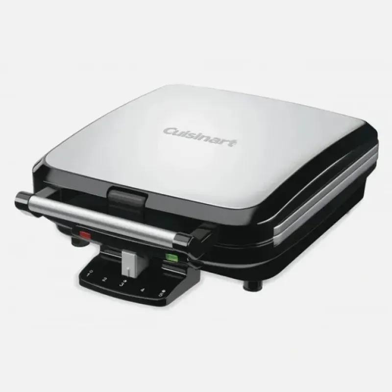 Take waffles beyond breakfast with the Cuisinart 4 Slice Belgian Waffle Maker. This high-performance waffle iron has an elegant stainless steel top and makes deep-pocket waffles to hold more toppings for more delicious options! Five-setting controls for browning create customized results to meet your family’s tastes. The green light signals when the unit is ready to bake and when baking is done. eliminating cooking guesswork!