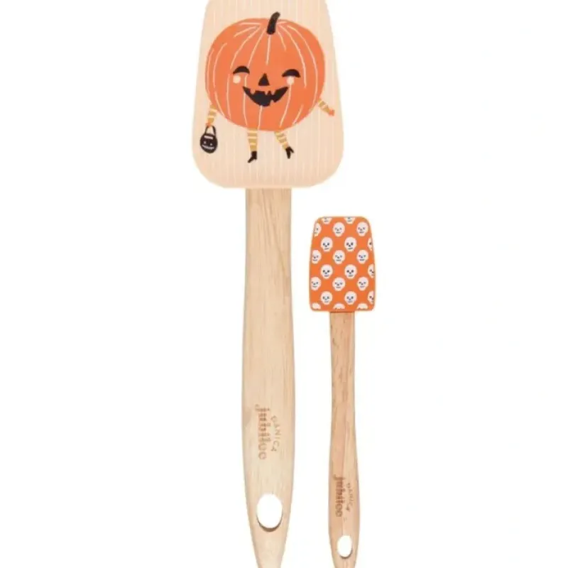 A spooktacular pumpkin and playfully ghoulish pattern bring just the right fright to Hallowe’en happenings. Two sizes of spoonulas stir together darling designs with heat-resistant. non-stick heads and removable handles. bringing fun and efficiency to kitchen creations.
