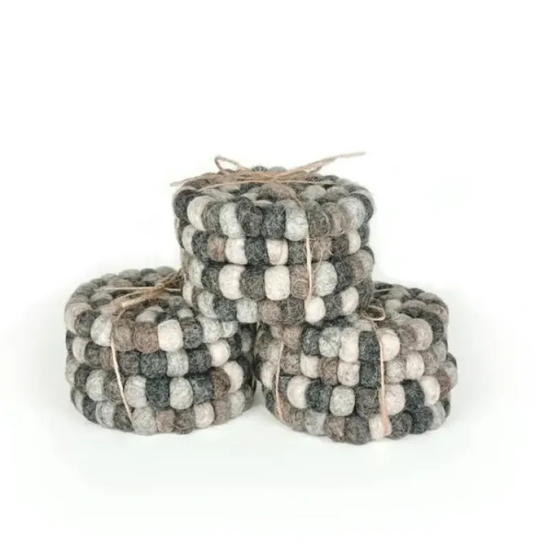 Made from 100% New Zealand wool. each set of four coasters is handcrafted by fair trade artisans in Nepal and assembled and packaged with love in our New Jersey studio.