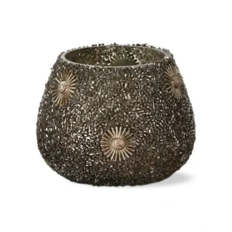 set the scene with our artisan-made dazzling tealight candle holder. handcrafted using blown glass techniques. use multiple to create dramatic displays for parties and special occasions such as weddings. holds a standard tealight candle. sold separately.