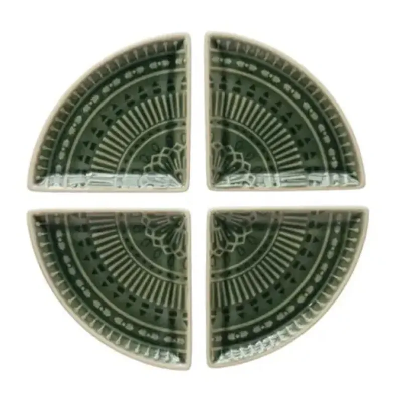 4-1/4″L x 4-1/4″W Debossed Stoneware Dishes. Crackle Glaze. Green. (Each One Will Vary)