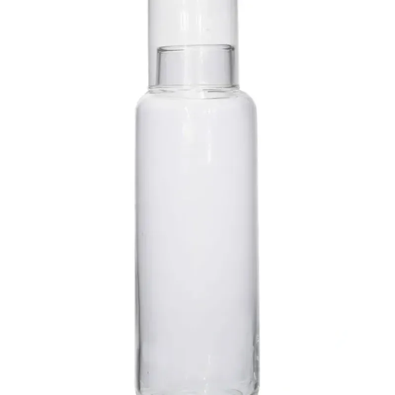 3-1/4″ Round x 11″H 32 oz. Hand-Blown Recycled Glass Carafe w/ 4 oz. Drinking Glass. Set of 2